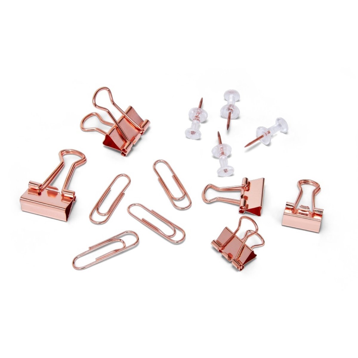 O kit é composto por uma variedade de acessórios feitos de metal e resinas termoplásticas de alta qualidade, garantindo durabilidade e estilo. Seu design delicado em tom rosé adiciona um toque de elegância e charme ao seu espaço de trabalho.