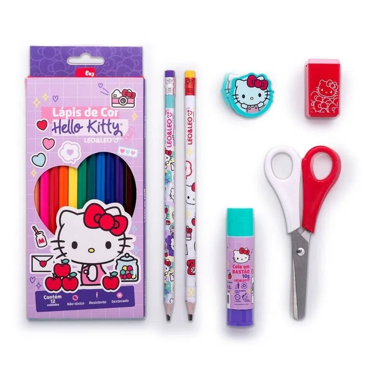 O Kit Lápis de Cor Hello Kitty Leo&Leo é atóxico e veio para ser a companhia ideal e de todos os momentos de aprendizagem da criançada.